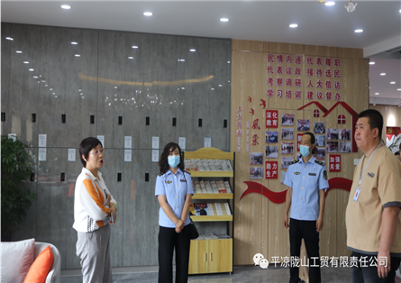 崆峒區(qū)人大常委會(huì)副主任、黨組副書(shū)記杜志民在平?jīng)鍪嗅轻紖^(qū)西郊街道黨工委書(shū)記賈元敏、平?jīng)鍪嗅轻紖^(qū)西郊街道黨工委委員、人大工委主任擺惠帶領(lǐng)下參觀平?jīng)鲭]山工貿(mào)有限責(zé)任... [詳情]